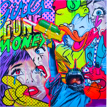 acrylic, spraypaint, pastel, collage on canvas
