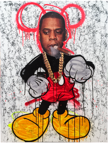 acrylic, spraypaint, collage on canvas