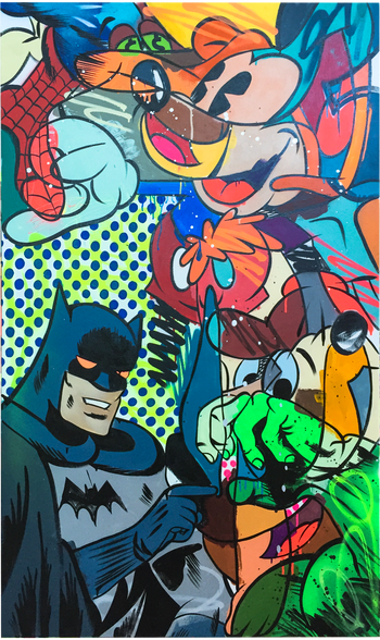 acrylic, spraypaint on canvas